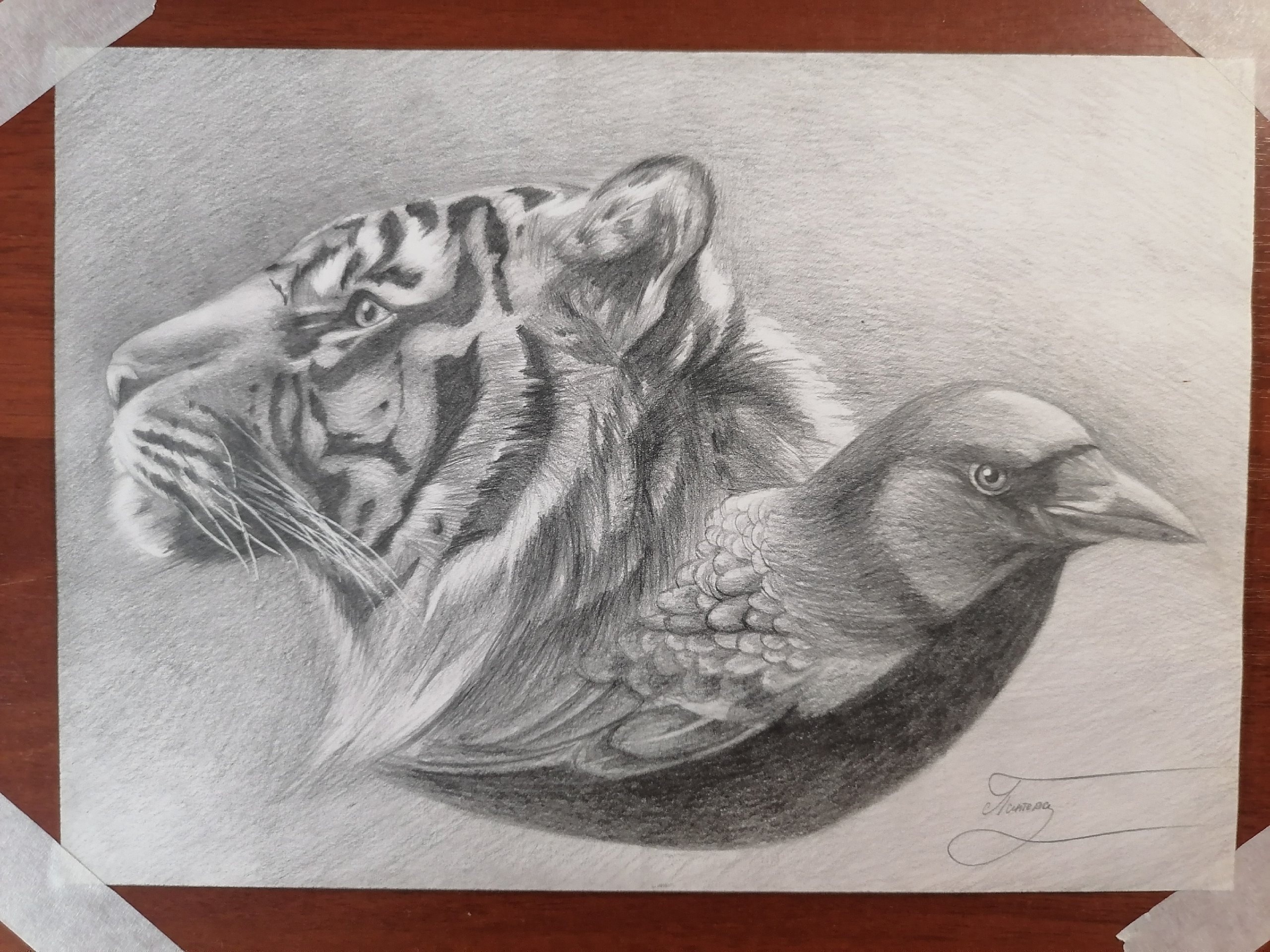 Подарок мужу на готовщину знакомства). Когда смотрю на него и анализирую в голове всегда эти двое: Тигр и Ворон.