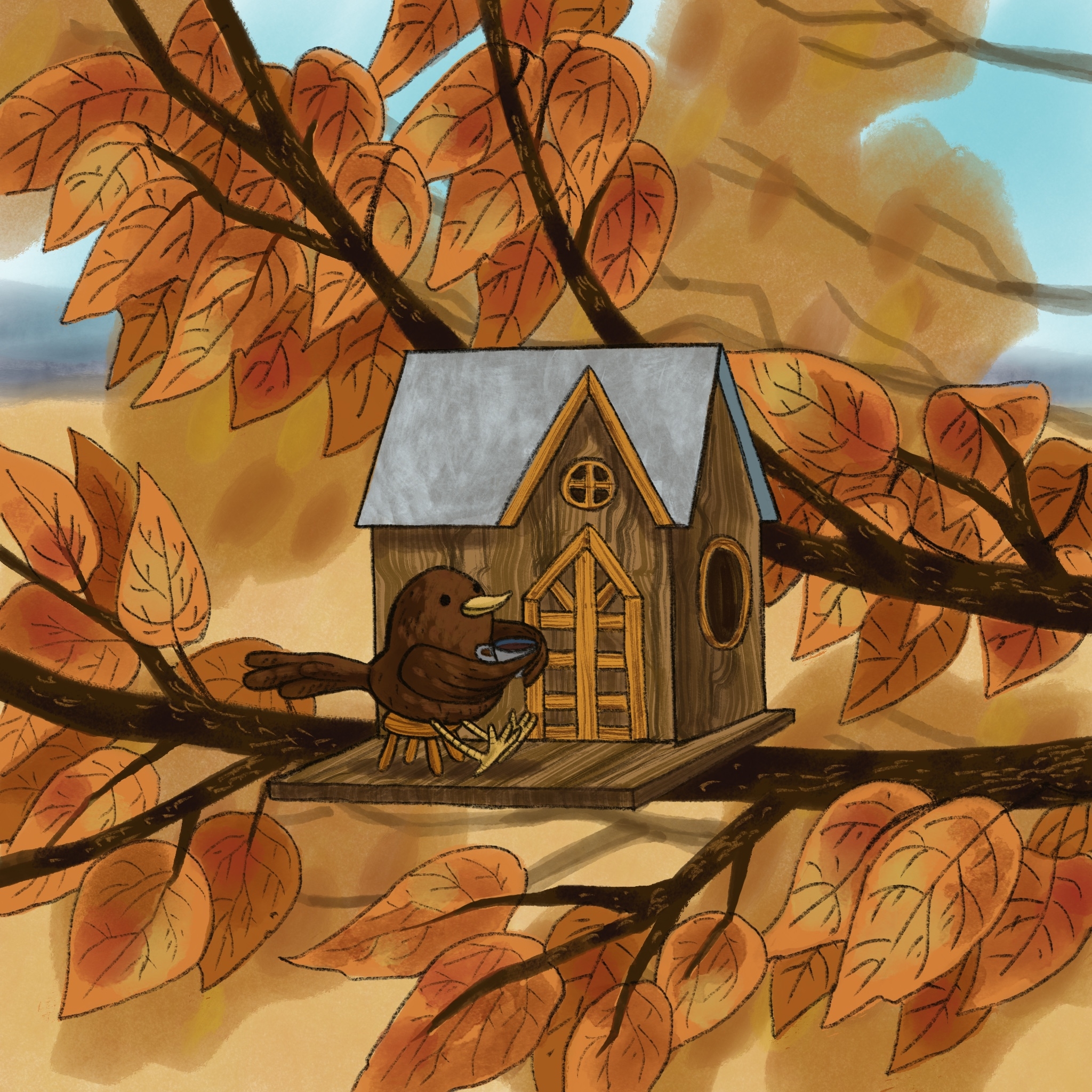 Птичка пьет чай
