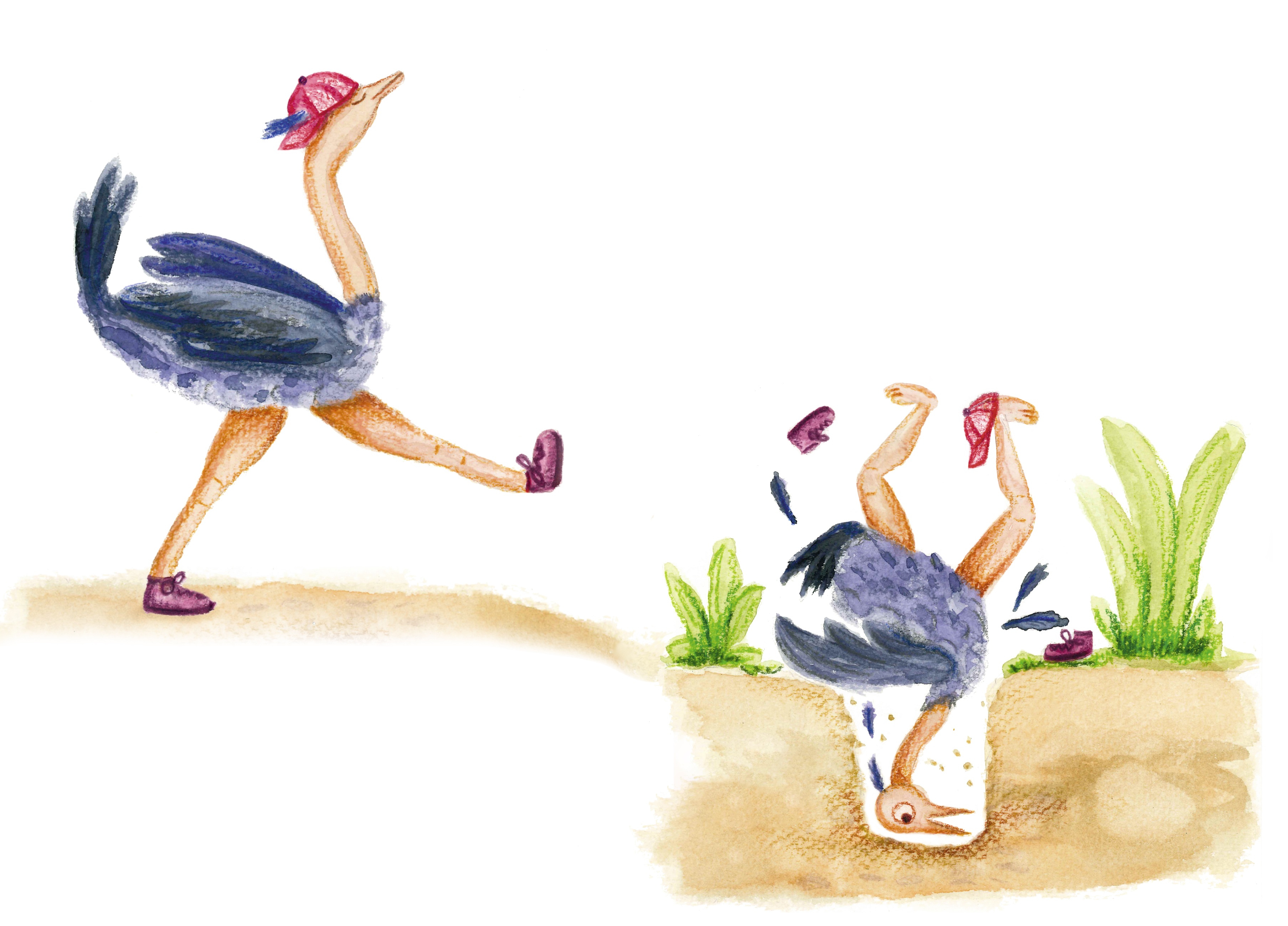 Акварельный страус: юмористическая иллюстрация для детской книги