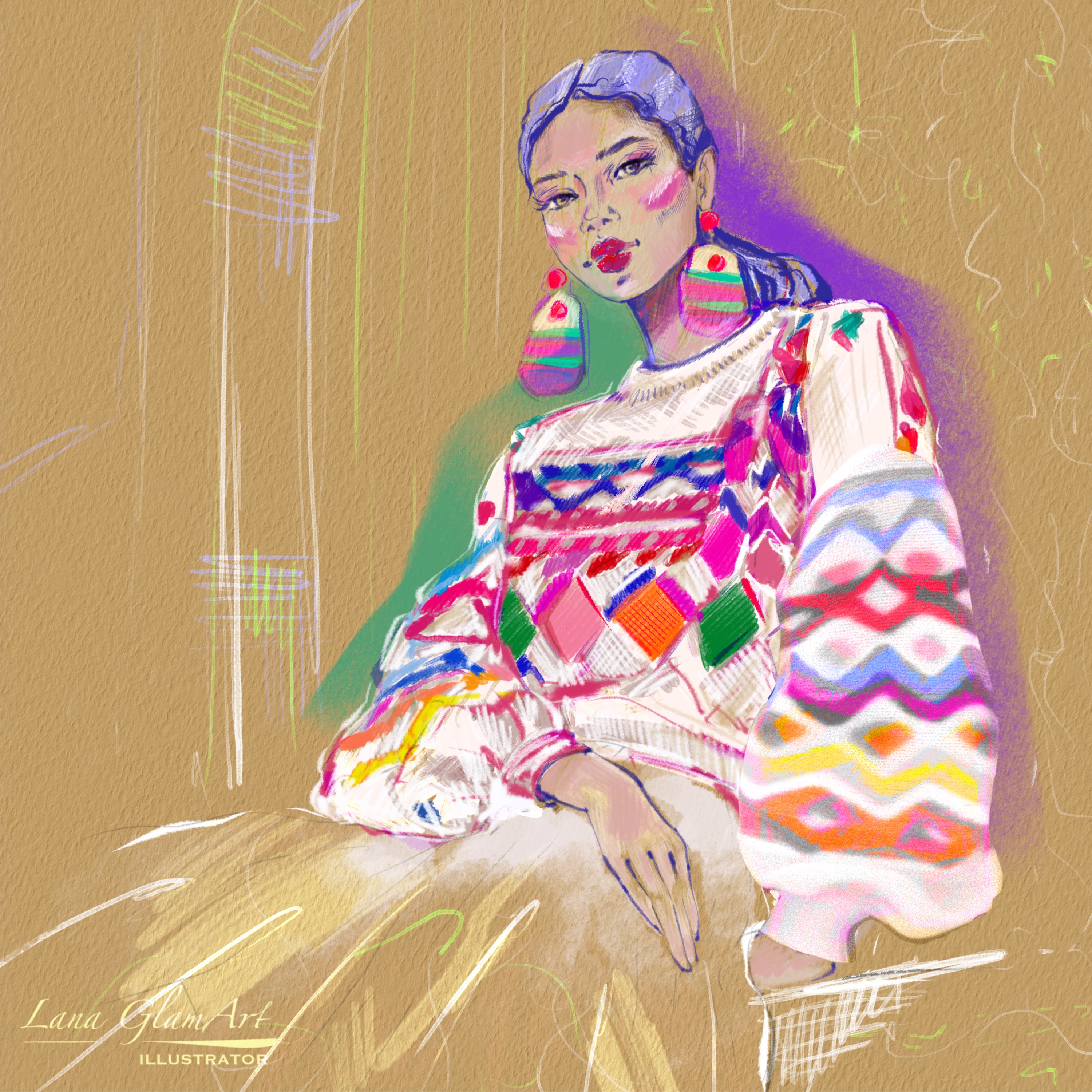 Fashion иллюстрация "Этника". Цифровая живопись на ipad.