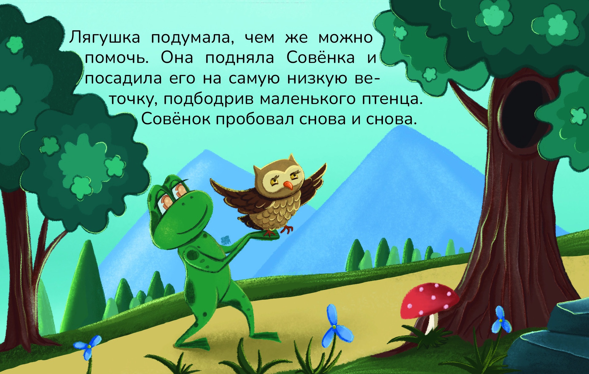 Это добрая детская история о маленькой Лягушке, которая однажды решается покинуть свой уютный пруд и отправиться в большое путешествие.