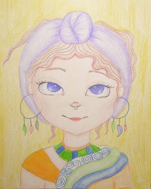 Милая девочка цветными карандашами