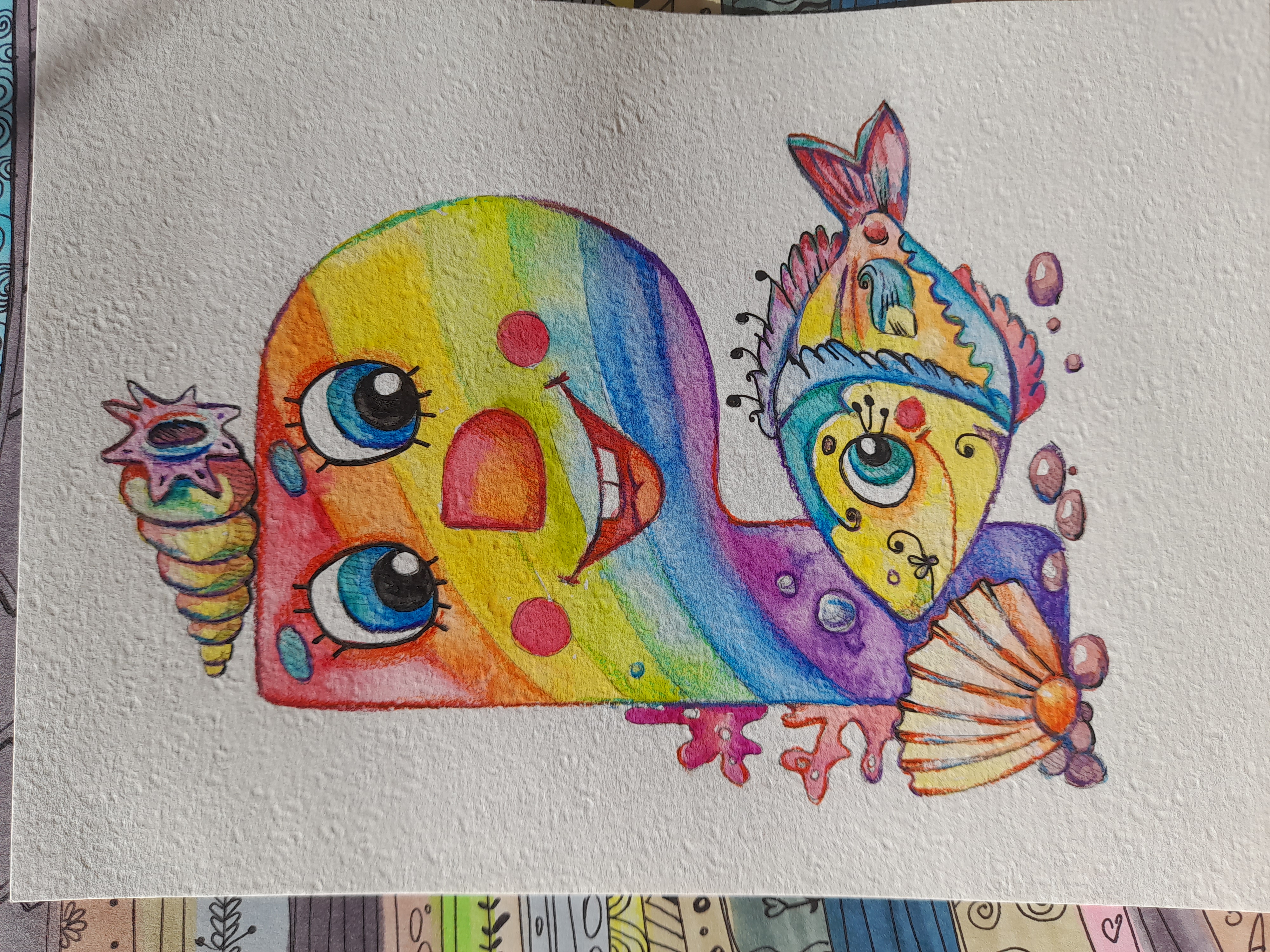 Буква. Акварель+цветные карандаши+линер.