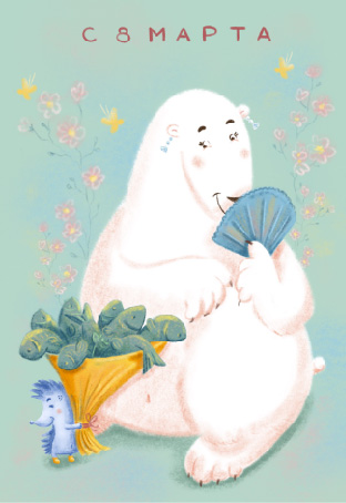 Иллюстрация к серии открыток о Ёжике и Мишке. 8 марта!