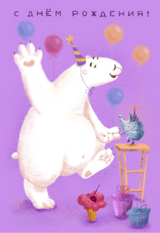 Иллюстрация к серии открыток о Ёжике и Мишке