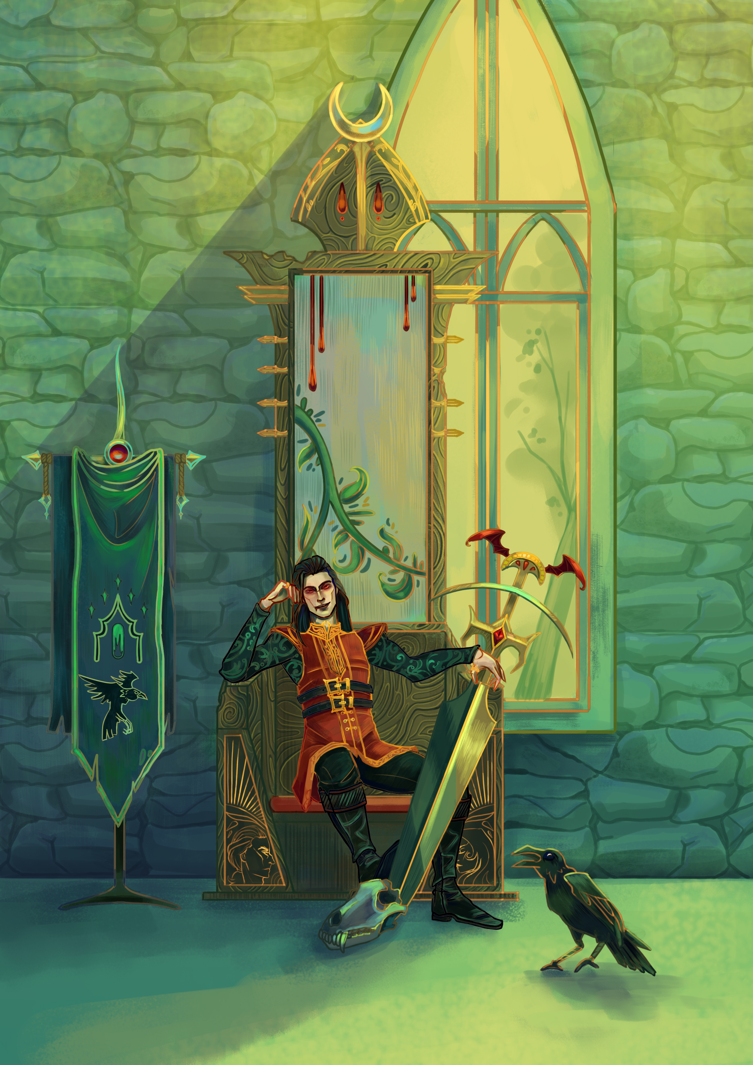 Иллюстрация к приключению Проклятье Страда в славянско-готическом сеттинге. На престоле восседает Князь-Упырь окрестных земель.
