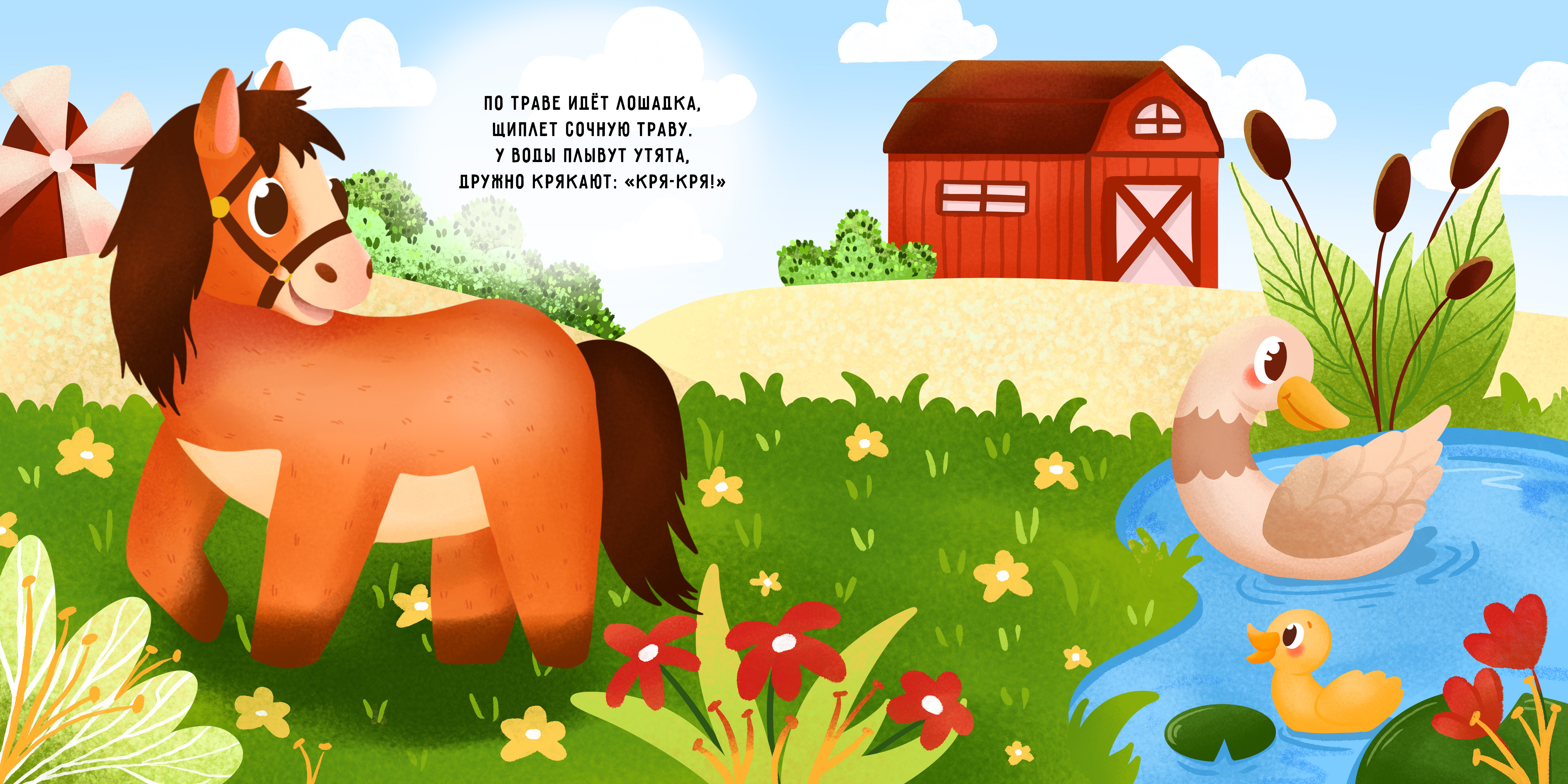 Иллюстрация для тактильной книжки. Животные. Ферма