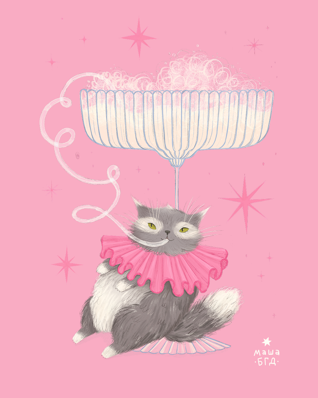 Кот с бокалом молока - иллюстрация Masha BGD (Маша БГД)