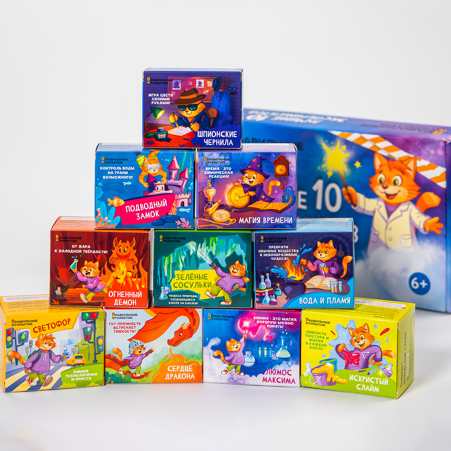 Разработка концепции упаковки и иллюстраций для детского набора химических опытов. Разработка бренд-персонажа