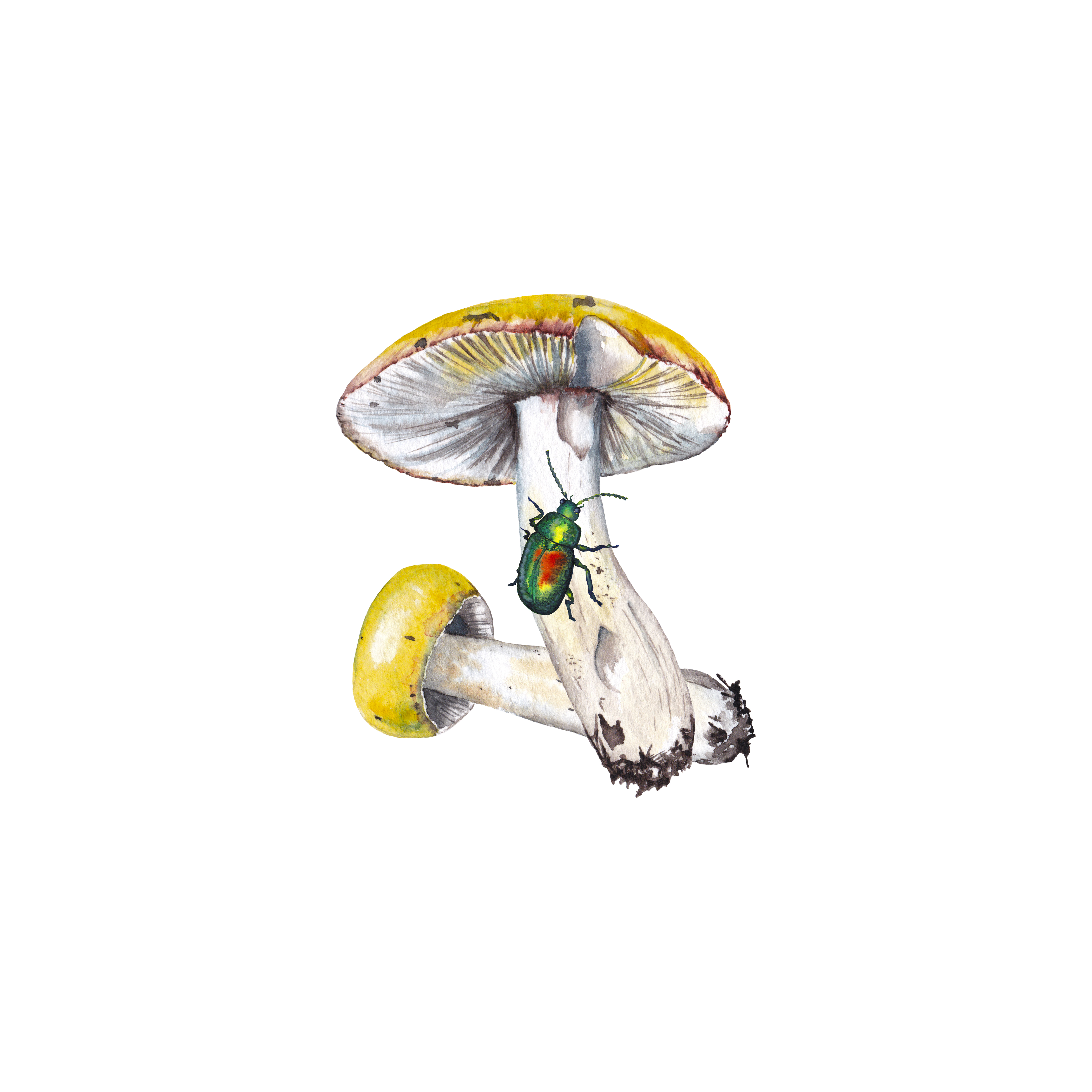 Грибы сыроежки и жук бронзовик