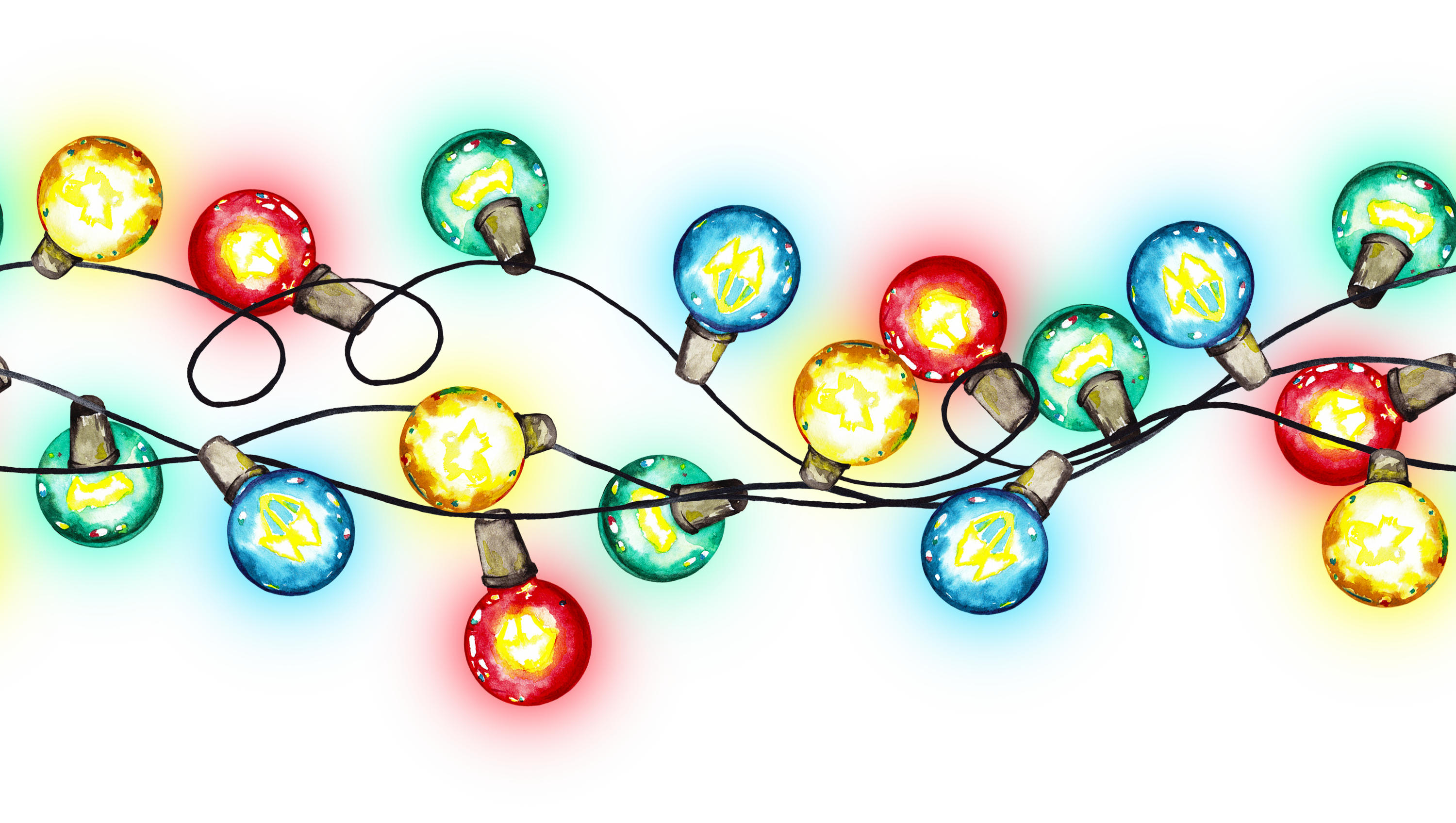 Праздничная уютная гирлянда из цветных ретро лампочек. Бесшовная канва для печати .png Акварель, нарисованная вручную. Цифровой файл для печати и виртуальных проектов.