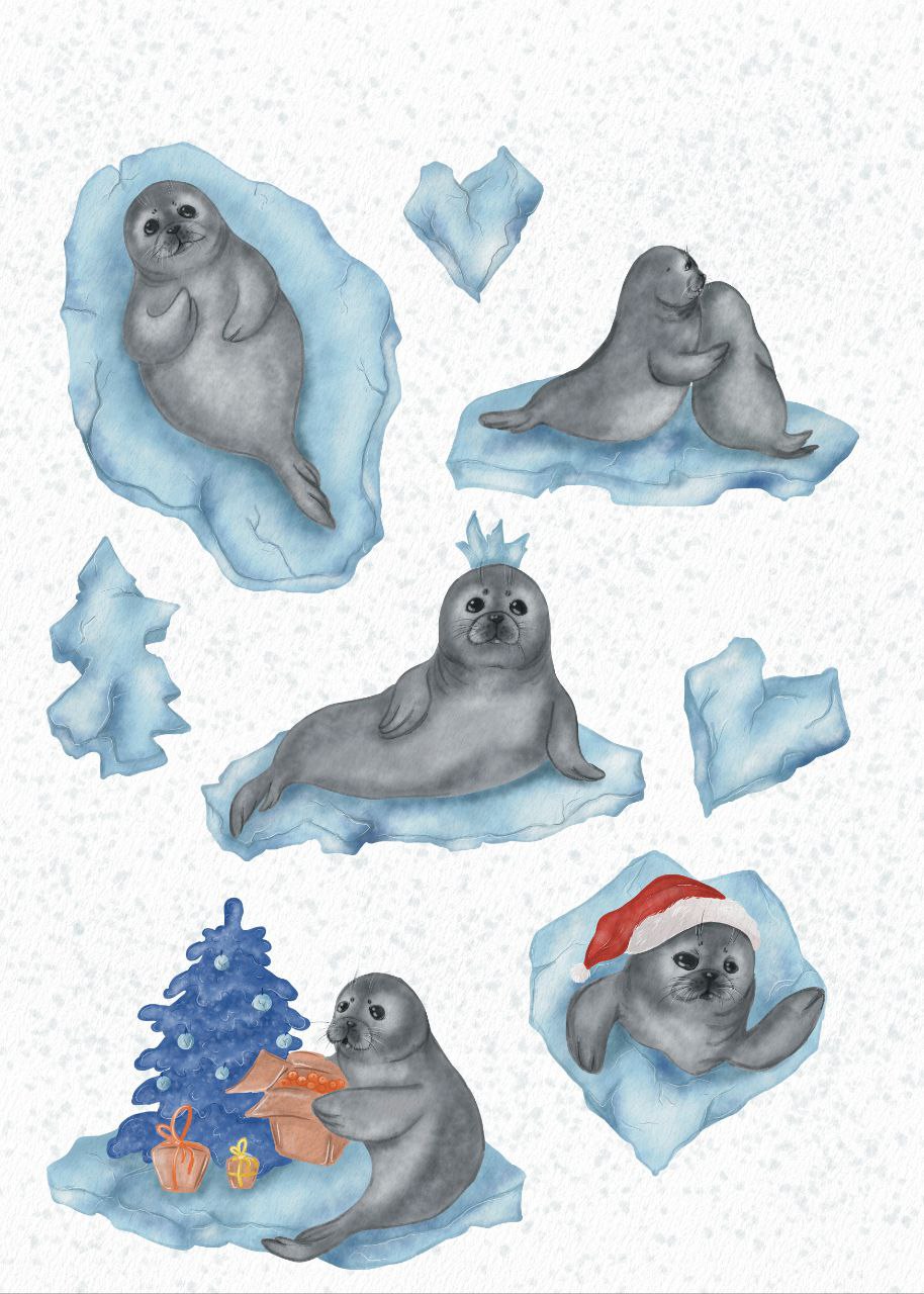 Нерпы на льду, стикерпак