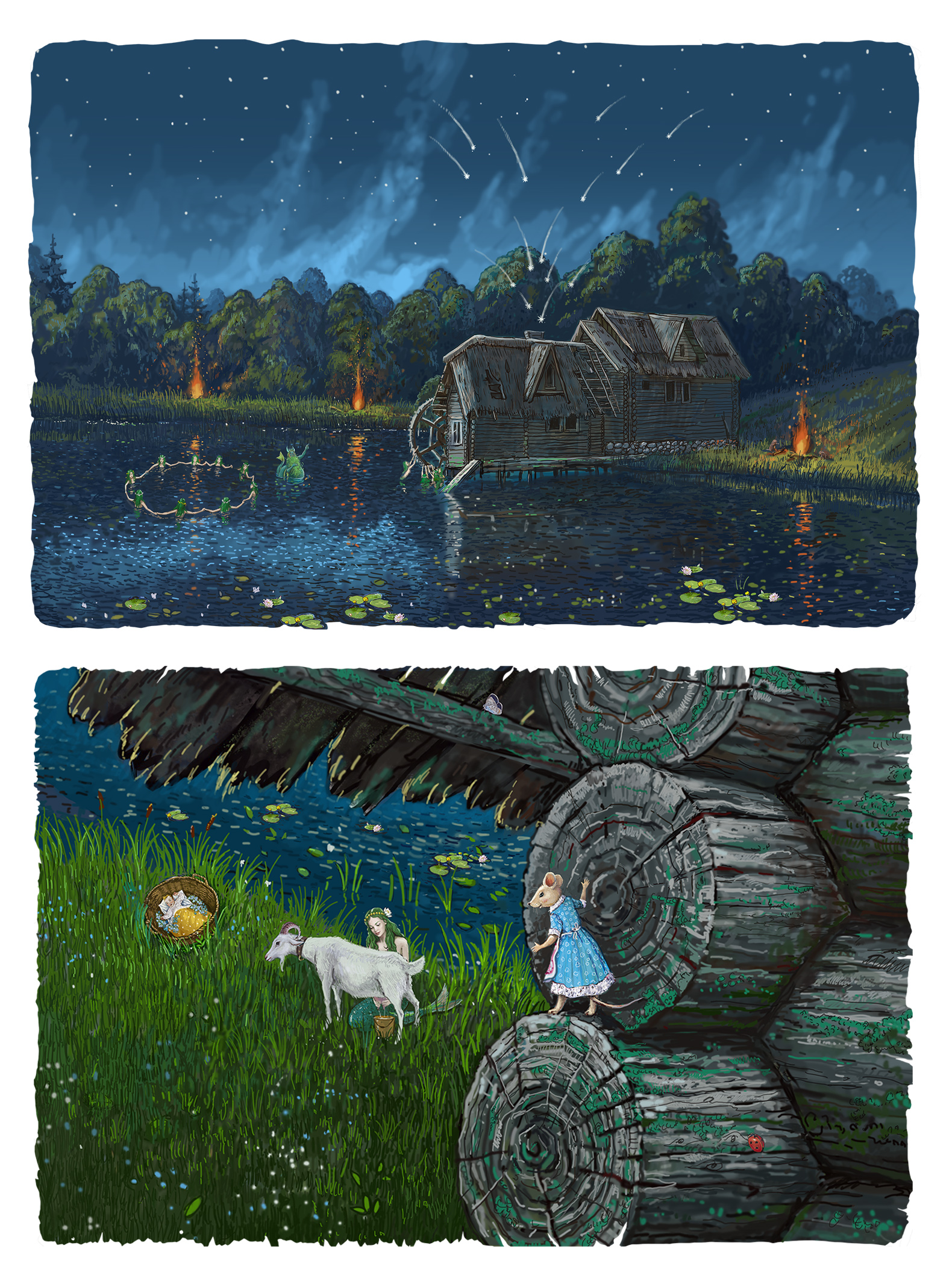 Звезды падают с неба в короб. Русалка Таисья доит козу.
