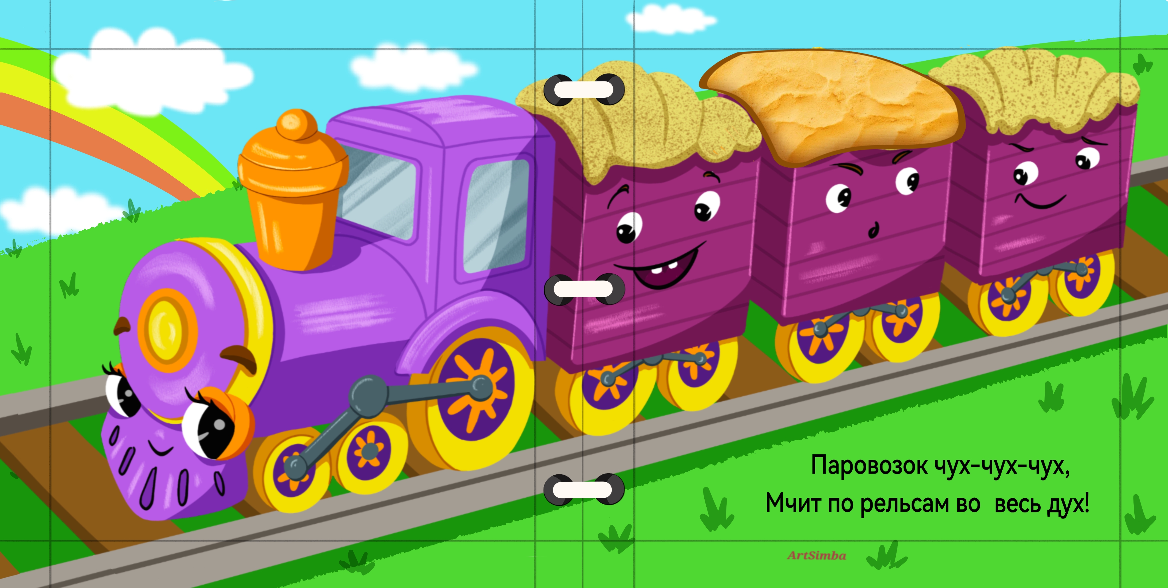 Паровозик. Разворот для детской тактильной книги " Транспорт".