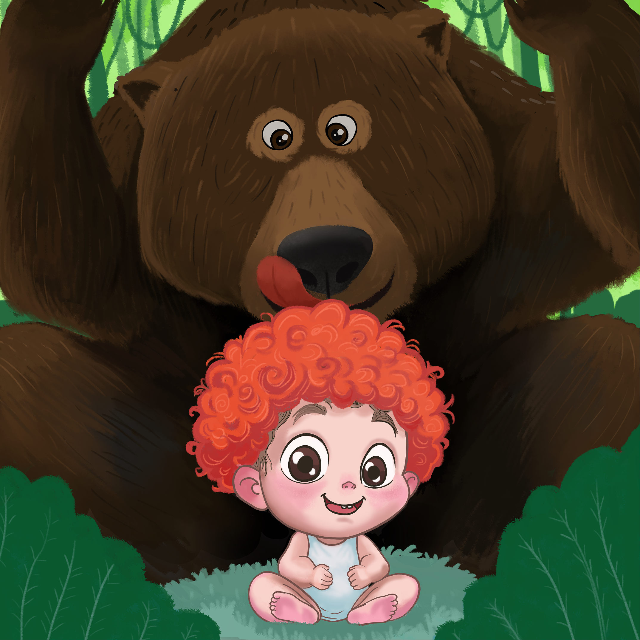 This illustration was created as part of a children’s book concept, focusing on warmth, safety, and emotional connection. The scene depicts a gentle bear alongside a small child, designed to evoke feelings of comfort and trust. The visual style combines soft shapes, expressive characters, and a carefully balanced color palette to appeal to young audiences. Special attention was given to character design, lighting, and composition to ensure clarity and storytelling impact. The project followed a full illustration process, including sketching, refinement, and final rendering in high resolution, making it suitable for print and digital publishing.