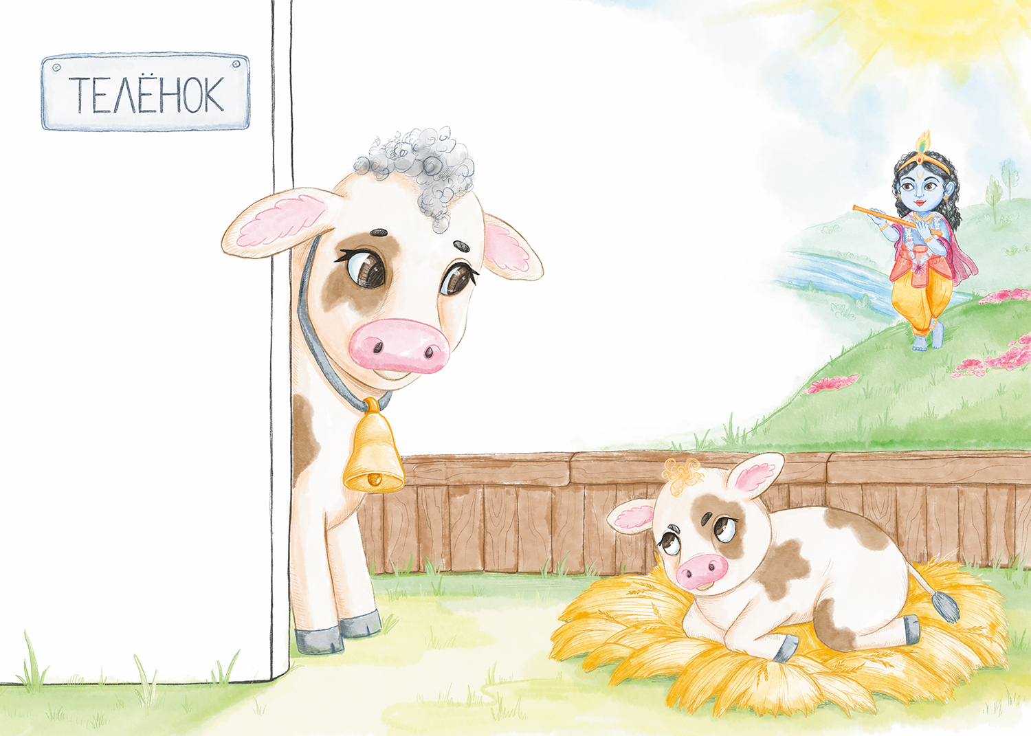 Книжная иллюстрация к детской песенке "Теленок"