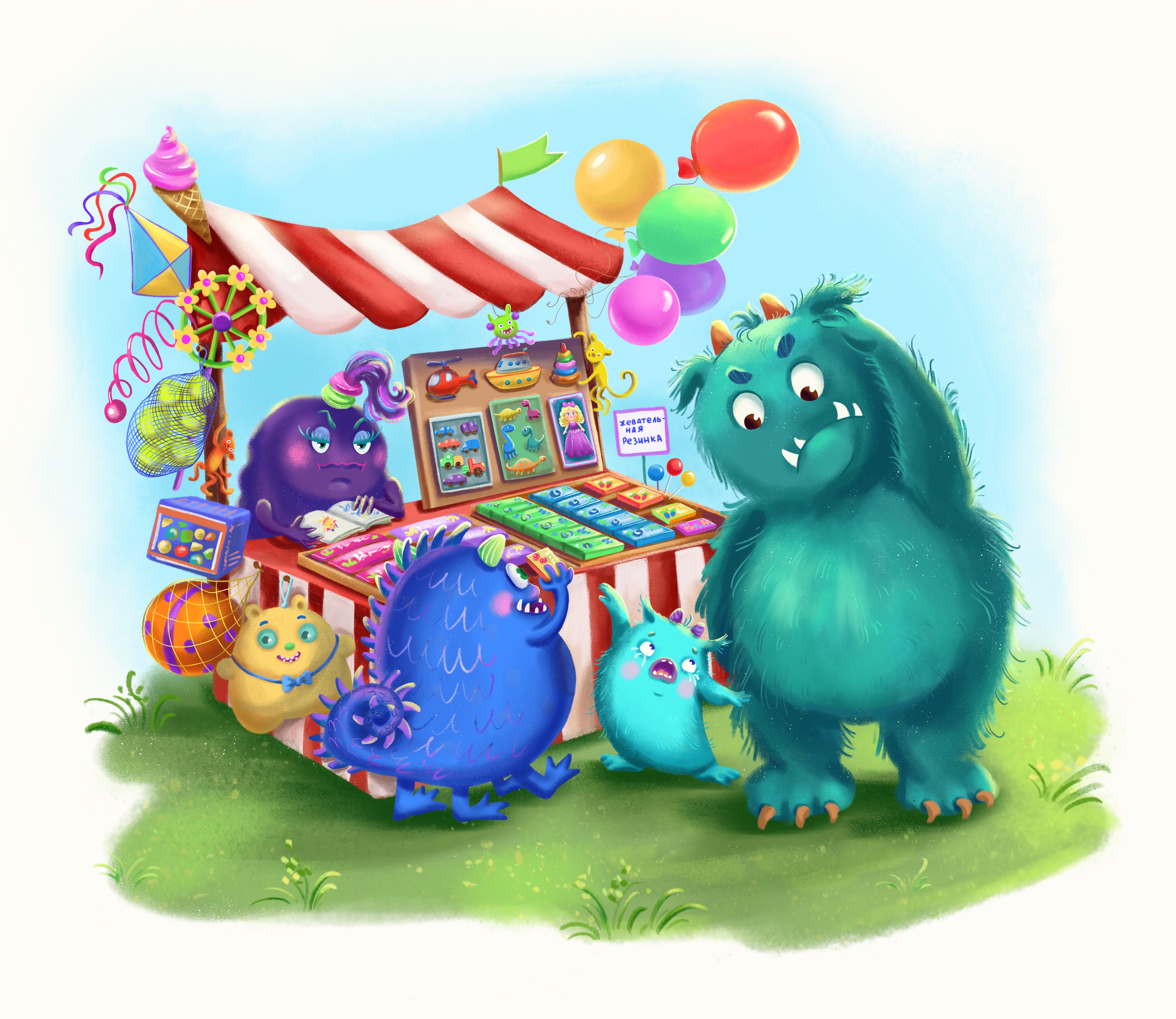 Сюжет на тему монстриков , гуляющих по рынку.