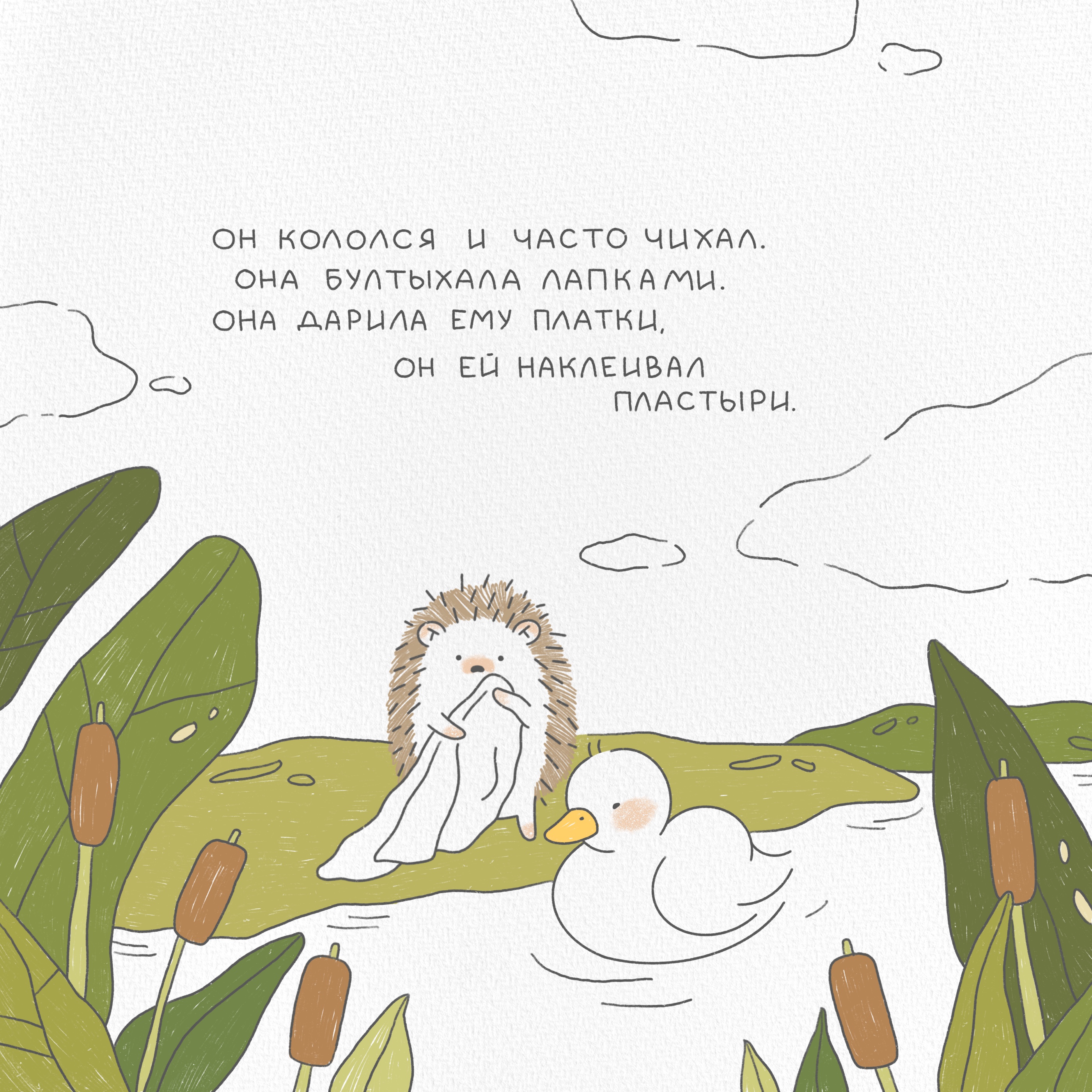Фрагмент из серии иллюстраций для рассказа про ежика Бубочку