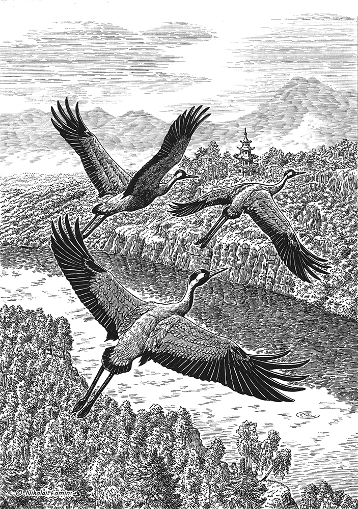 Для обложки сборника стихов Николая Рубцова "Эхо души" на русском и китайском (перевод) языках.