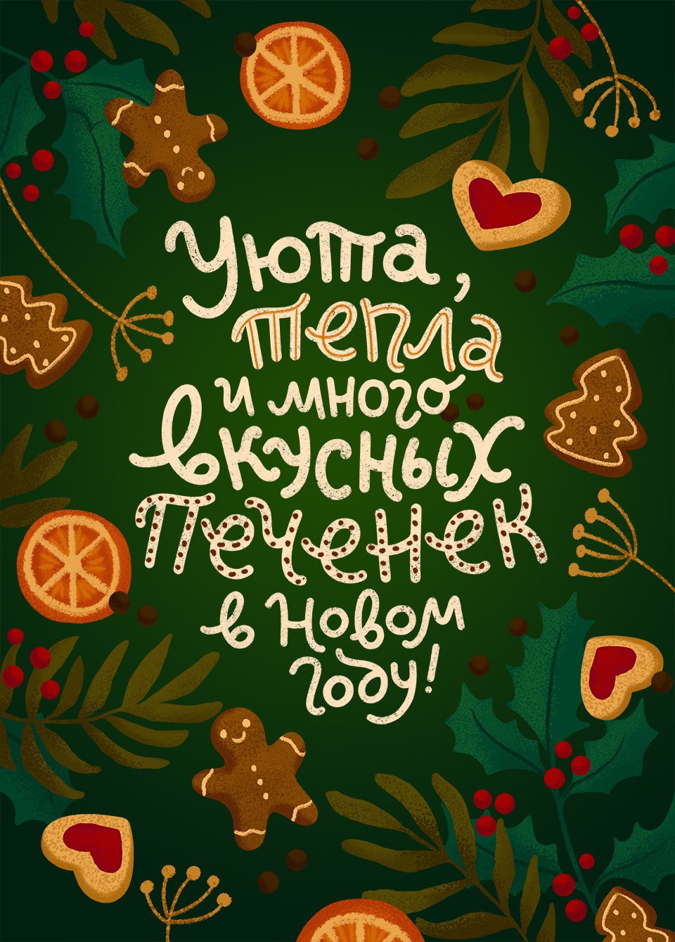 Иллюстрация с новогодними пожеланиями для открыток, календарей и другой продукции. Персональный проект.