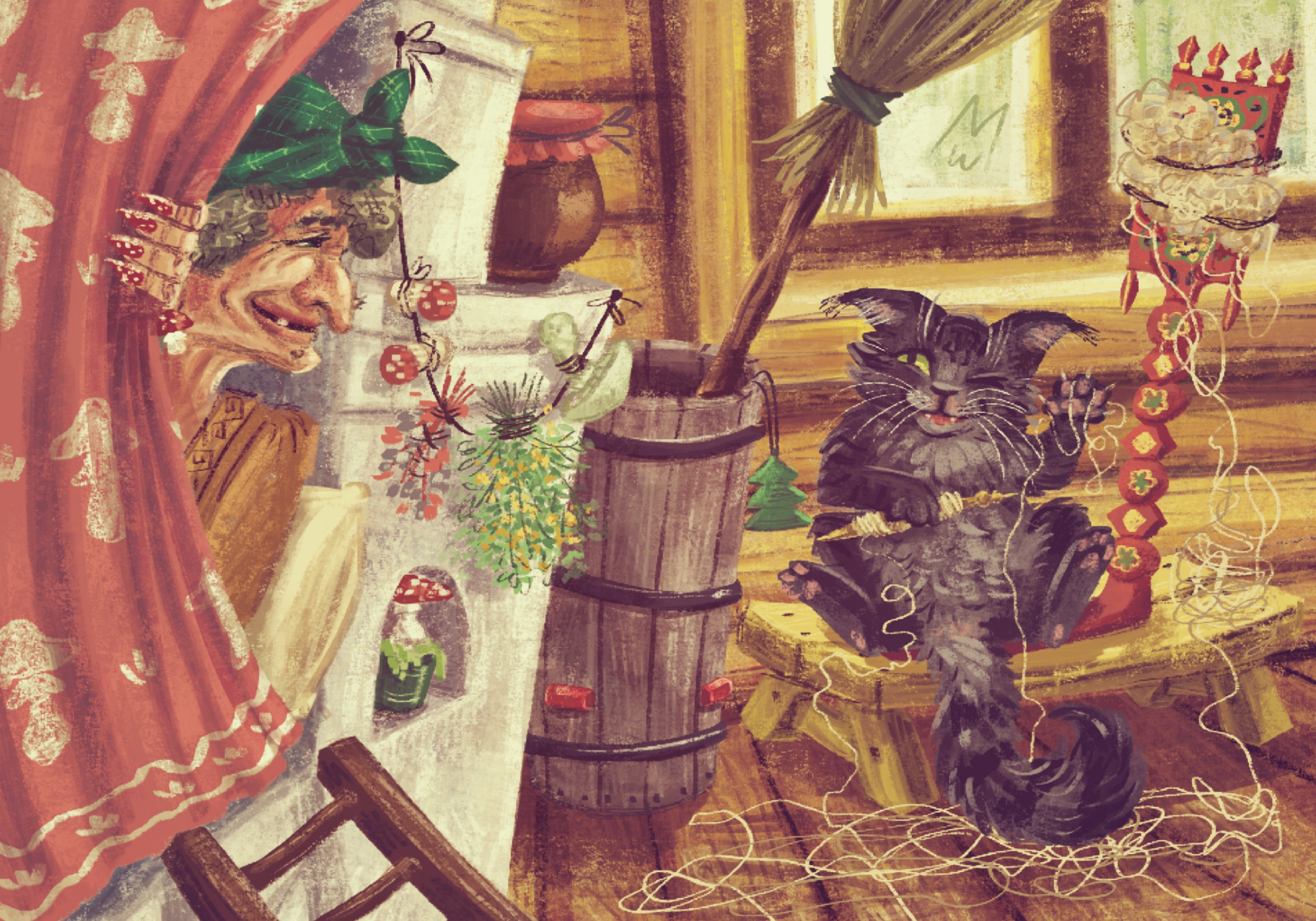 Баба Яга, кот и прялка