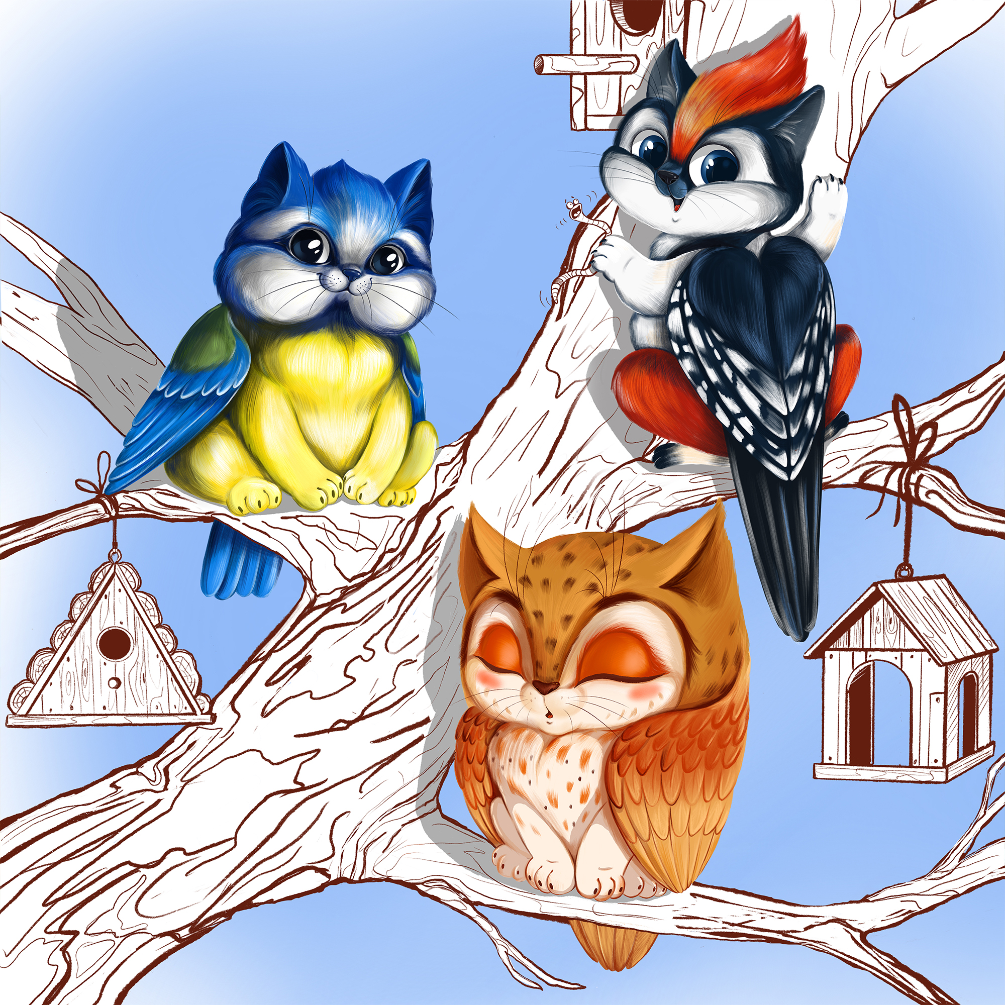 Коты птички. Серия работ котометамарфозы