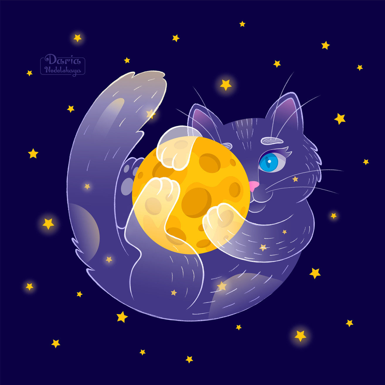 Облачный котик с луной