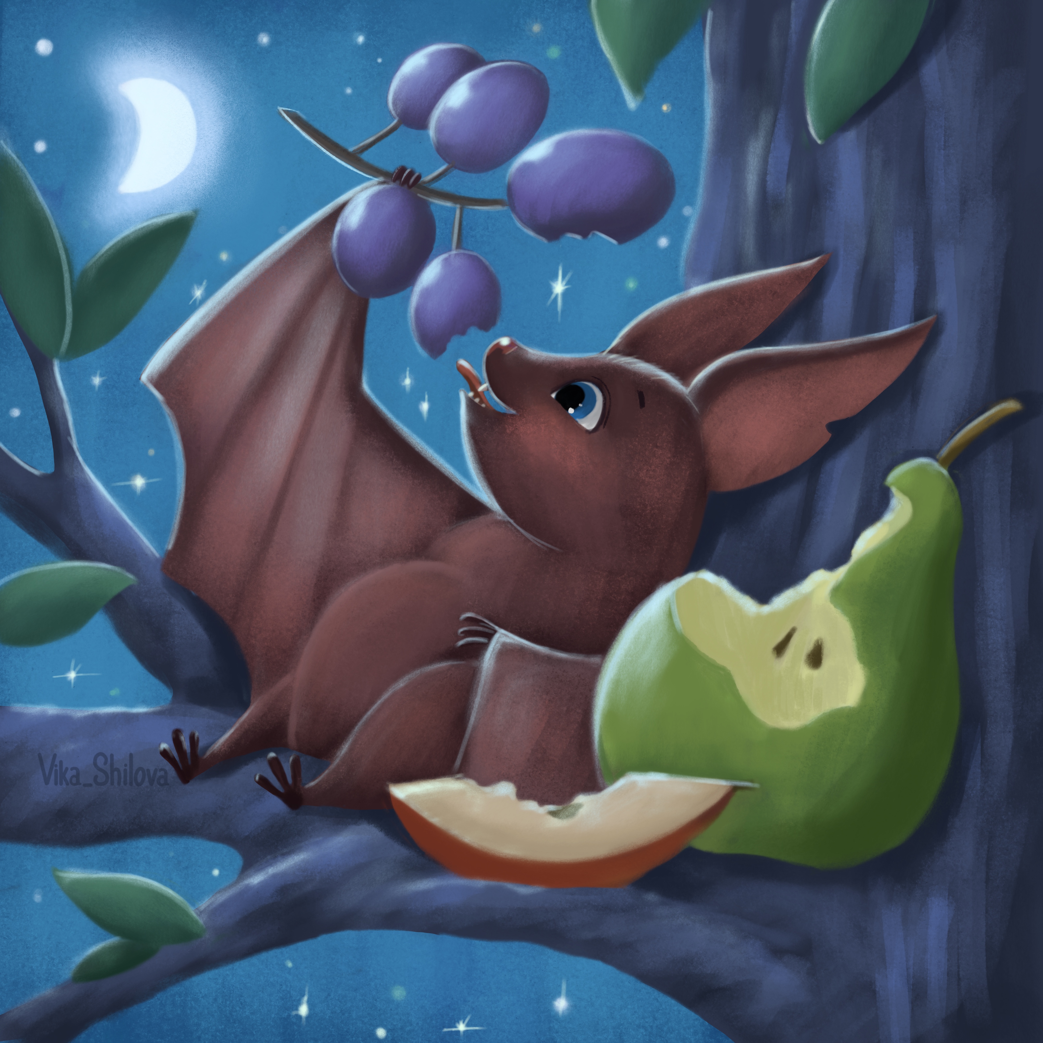 Летучая мышь кушает фрукты