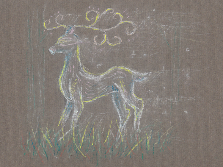 Читал книгу, понравился момент когда Гарри спасался от Дементоров, ну и вдохновился на рисование его патонуса серебряного-оленя.