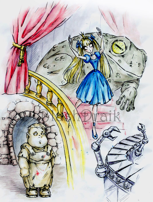 Жаба выстрелила языком и… вырвала им у принцессы душу! Бесплотная сущность, извиваясь, упала на пол и превратилась в маленького невзрачного человечка: толстый (ни шеи, ни талии), в бесцветной бесформенной одежде и в фартуке, перепачканном чем-то бурым, на безэмоциональном лице безвольные, безразличные глаза. Серый человечек.