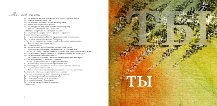 Альбом графики на белый стих "ТЫ" Ольги Довгопол. Построчное иллюстрирование, графика буквами.