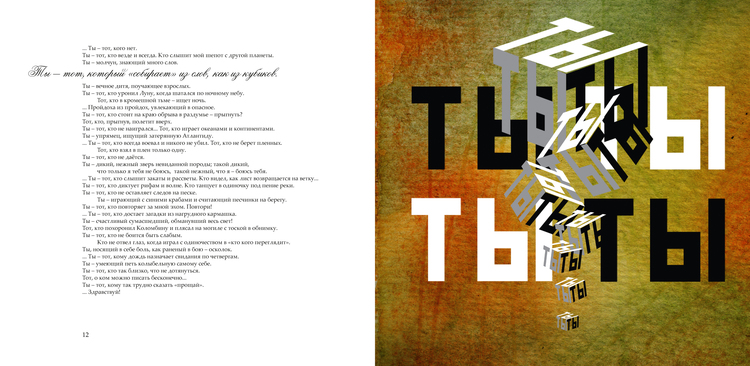 Альбом графики на белый стих "ТЫ" Ольги Довгопол. Построчное иллюстрирование, графика буквами.