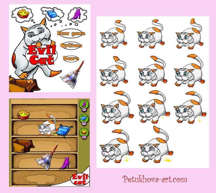 Игровое пространство, персонаж и раскадровка его анимации.