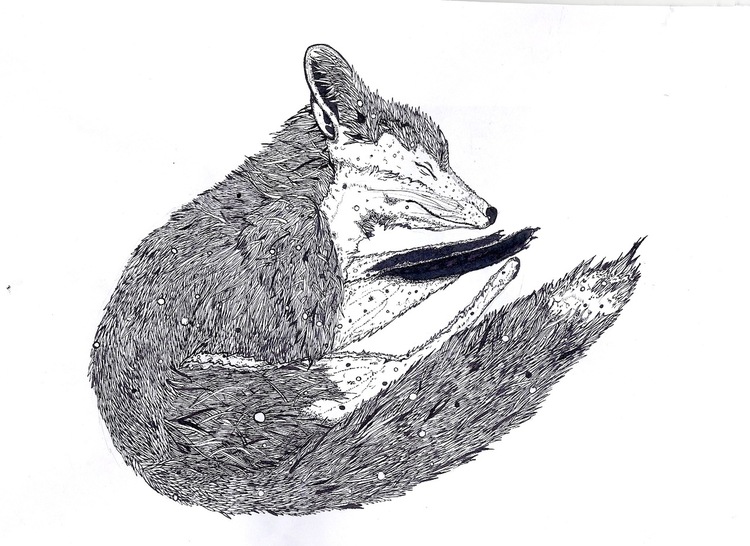 A4.рисунок спящей лисички, принты в хорошем качестве.оригинал находится на выставке в Kolding bibliotek.