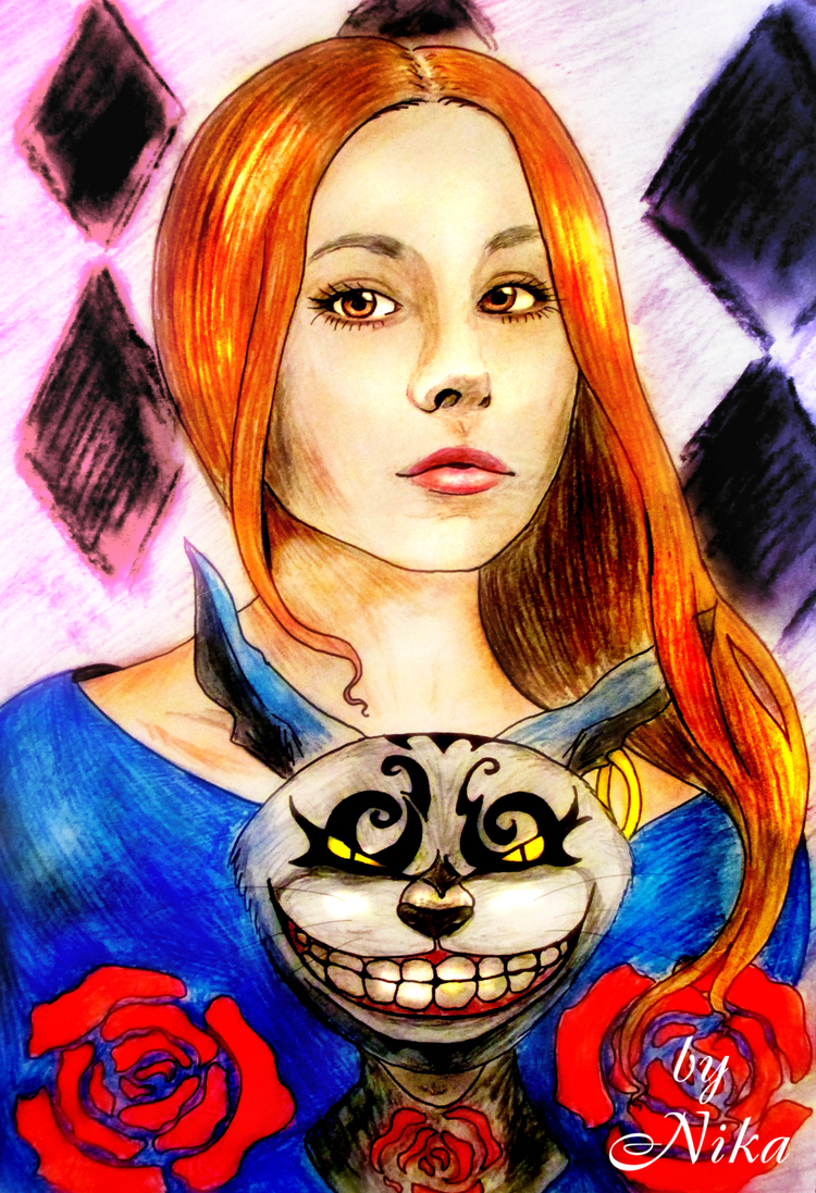 Портрет девушки выполнен цветными карандашами, формат А4. За основу взята ее фотография, а образ из игры Alice The Madness Returns