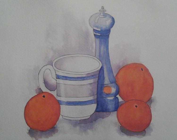 Натюрморт. Чашка, апельсины и перечница.