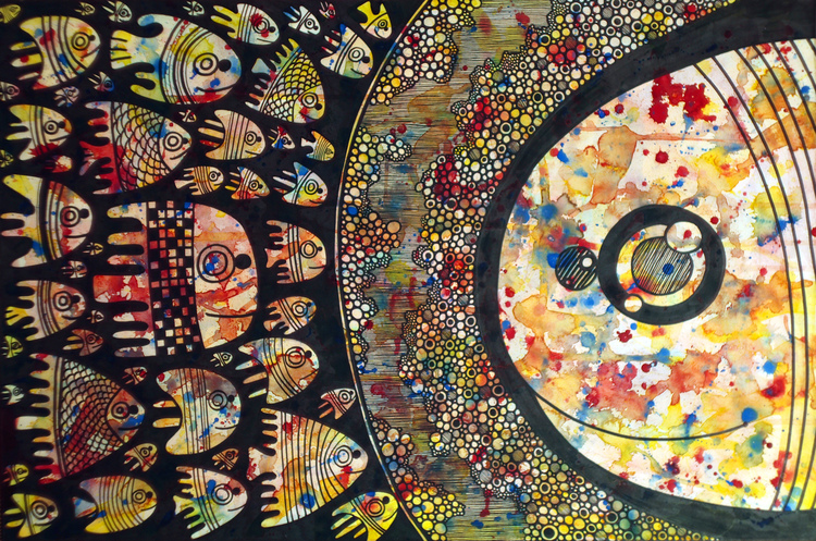 40х60_акварель, черный маркер, черная гелевая ручка