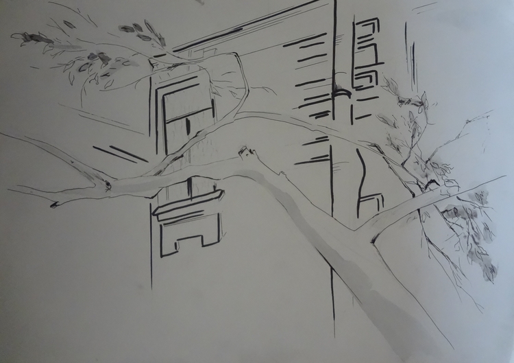 Деревья на фоне города