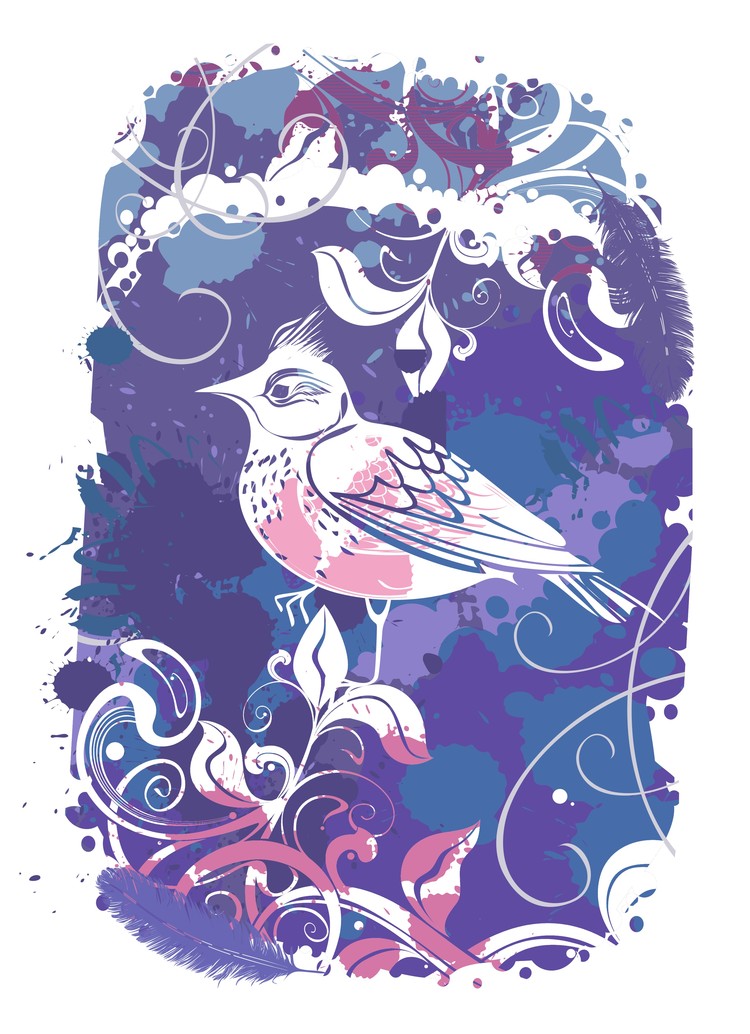grunge vector illustration - little bird