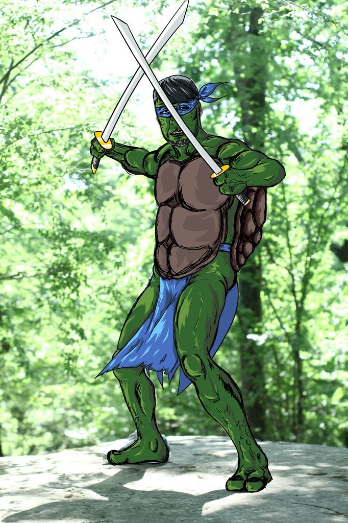 Преображение друзей в персонажей комикса Черепашки Ниндзя.