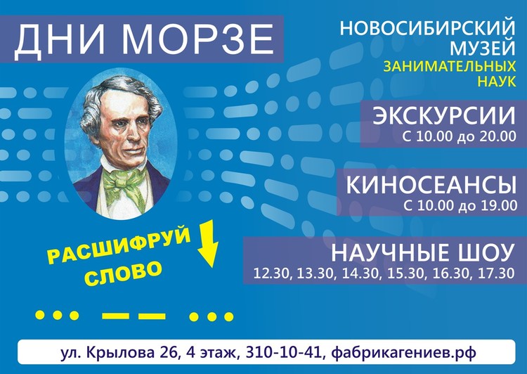 Рекламный плакат для Музея занимательных наук, г. Новосибирск ко дням С.Морзе.