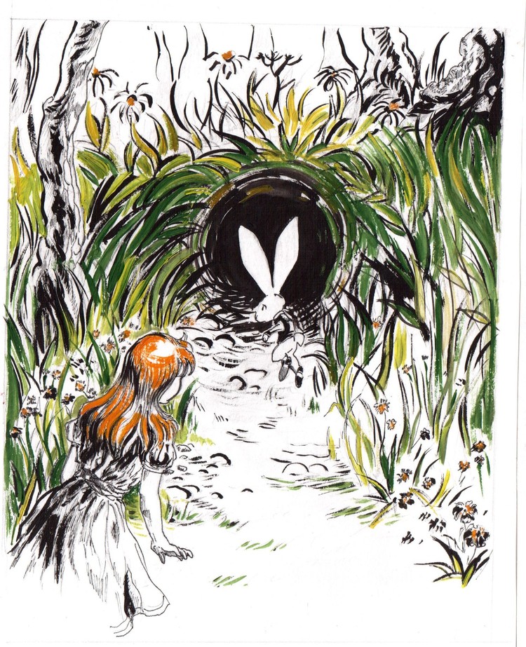 "Темная длинная нора...Куда же он спешит?"