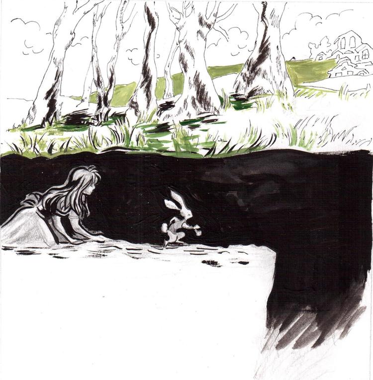 "Темная длинная нора...Куда же он спешит?"
