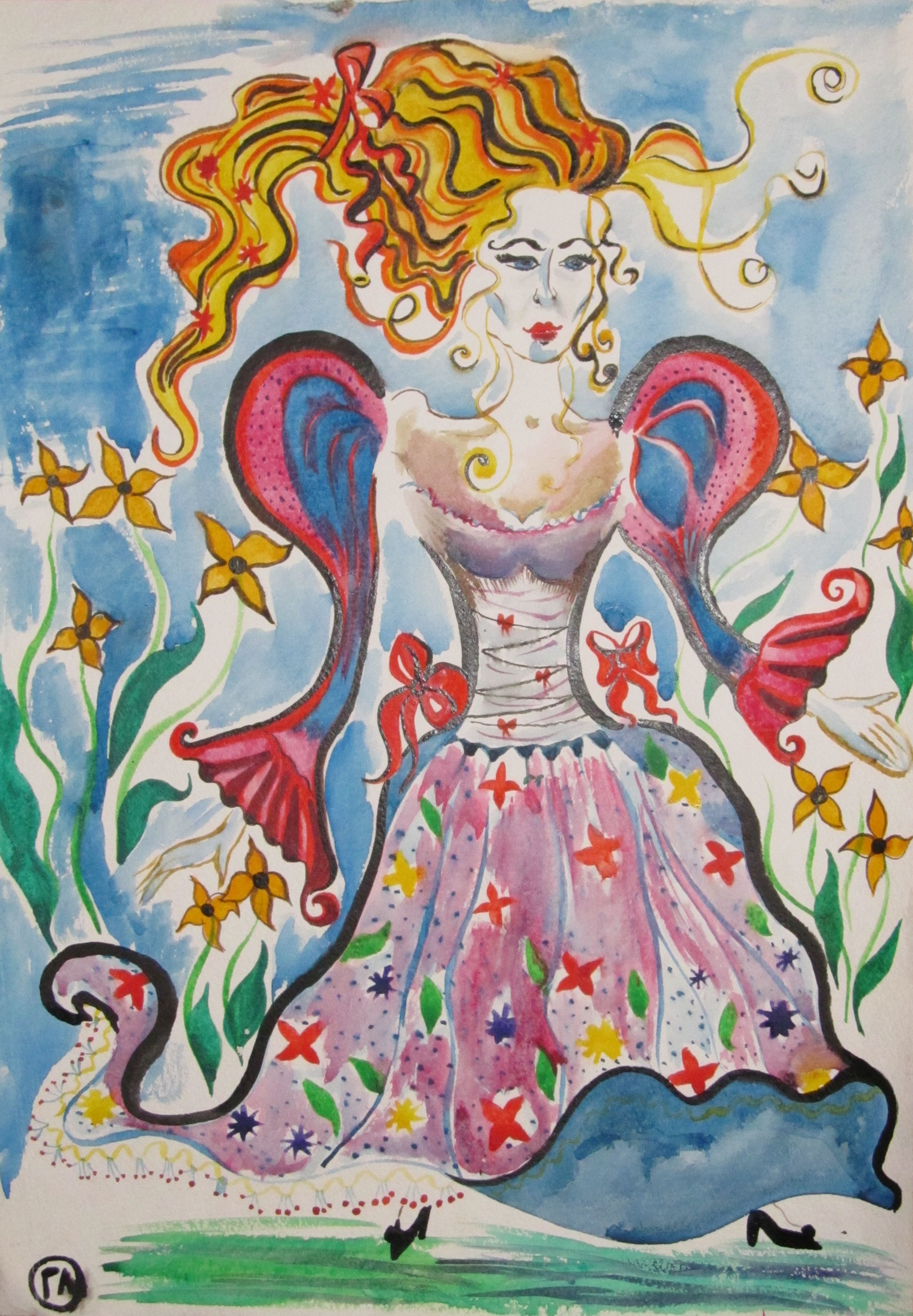 Девушка-весна пришла из очаровательной страны Любви к нам маленьким друзьям. Принесла с собой охапку цветов, ягод и хорошего настроения.Похожа она на Алису в стране чудес.