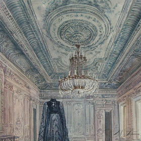 Акварель. На создание работы вдохновило даже не платье, а обои, увиденные в одной питерской коммуналке (это Вильям Моррис, да:)))