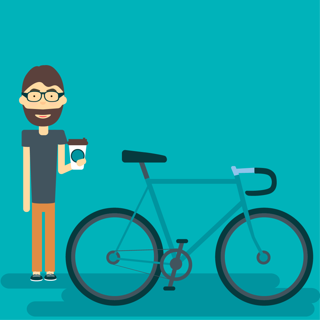Велосипедист с кофе