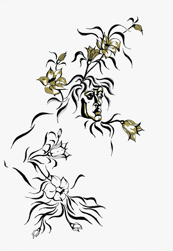 Тушь, гелевая ручка (серебро, бронза)