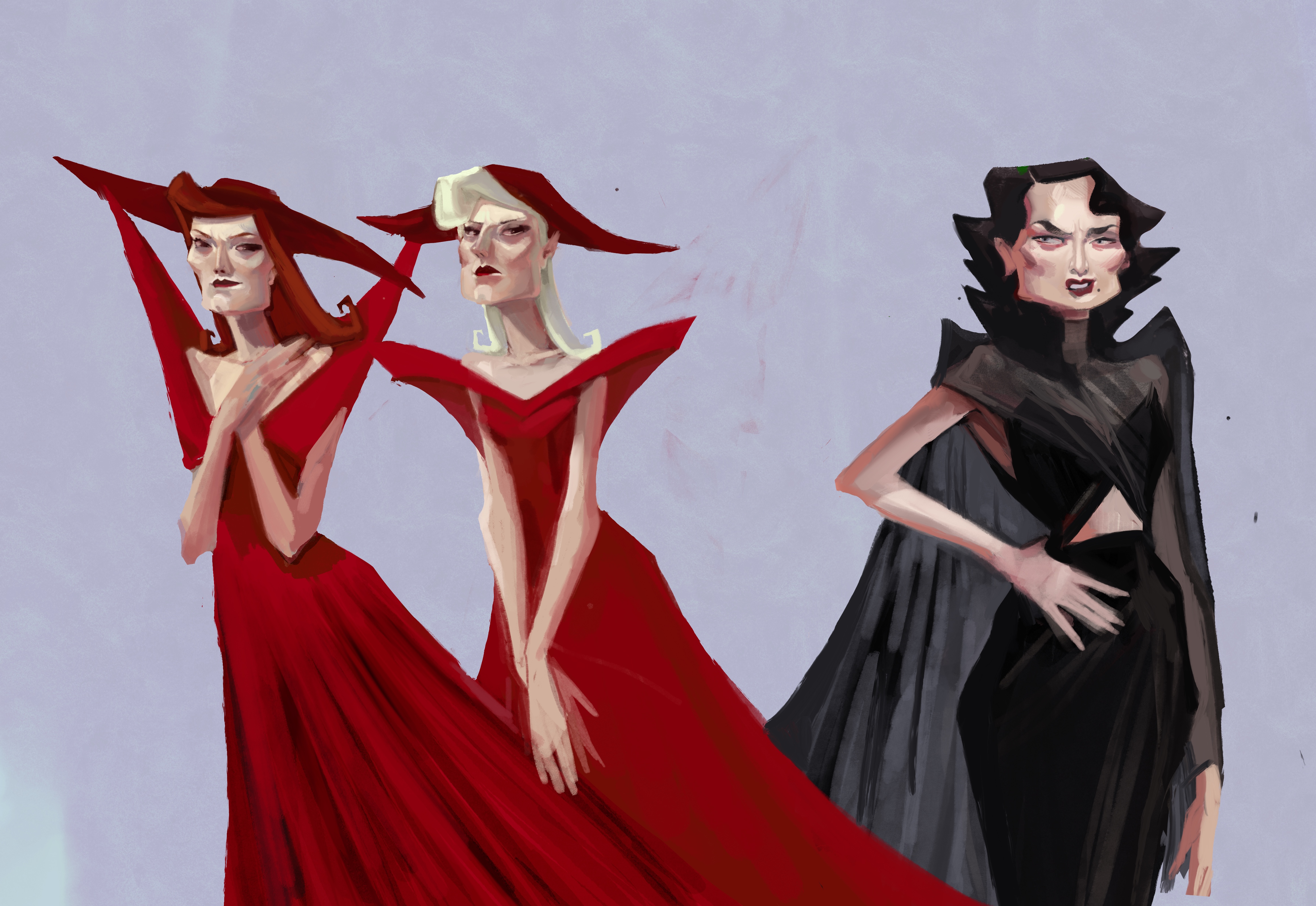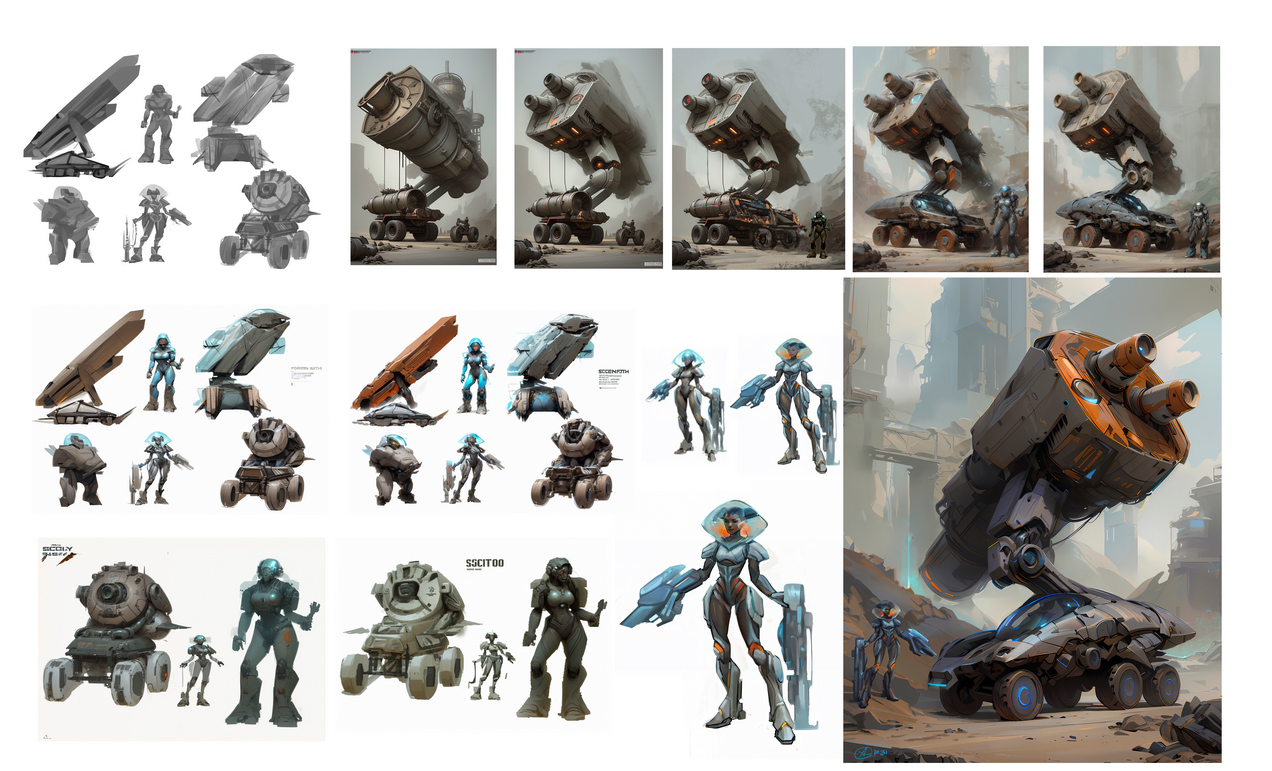 - Разработка динамичных композиций с выразительными позами, сложными ракурсами и драматическим освещением.