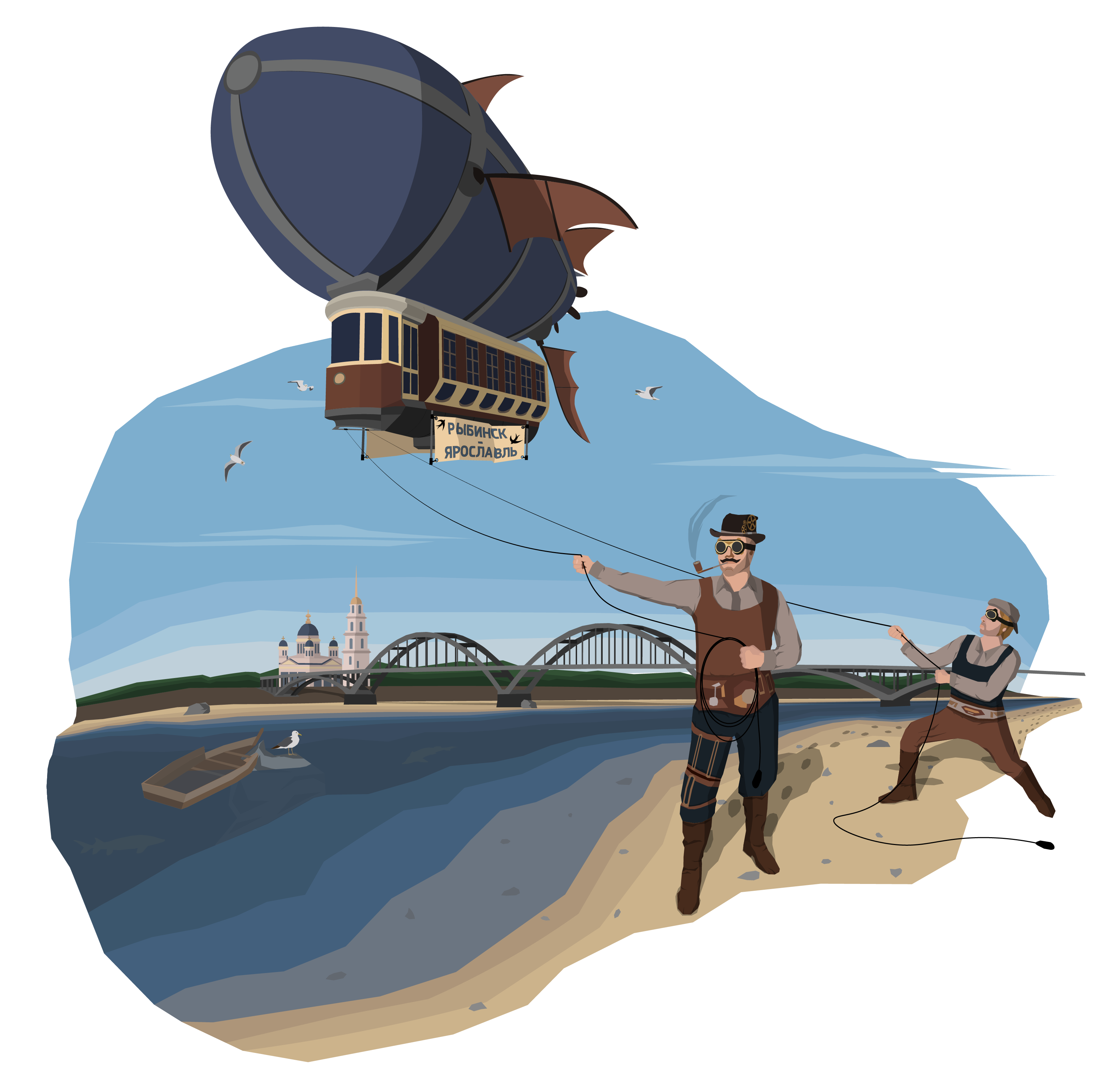 Бурлаки близ Рыбинска, что на Волге, могут тянуть не только речные, но и воздушные суда против ветра