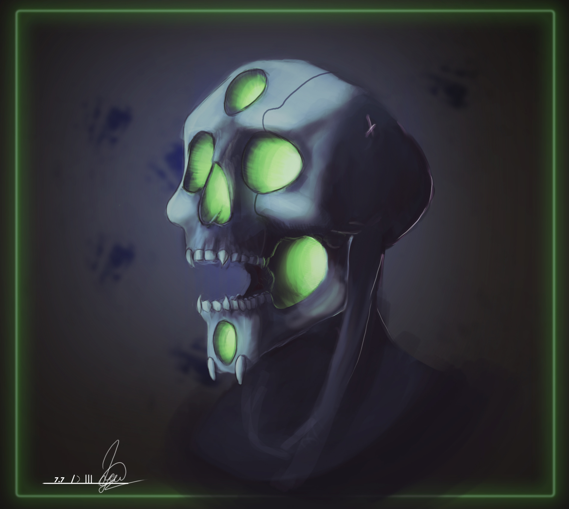 Кибер-скелет, может Демон. изнутри сияет зеленая энергия. может использоваться в игре или в серии комиксов как один из командиров армии зла). есть скетчи в полный рост